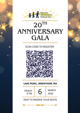 Sunrise Montessori School is proud to celebrate our 20th anniversary. This milestone is a testament to the dedicated network of families, founders, educators, and community members who have supported our mission and passion. So, we thought we should host a gala to bring everyone together and commemorate this milestone. We feel bringing together everyone involved, both past and present, is the perfect way to honor our journey and the bright future ahead. Don’t miss out on the laughter, stories, and celebration of our amazing community!