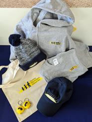 We have a limited supply of t-shirts (children & adult sized), heavy weight sweatshirts (adult), baseball caps, knit beanie style hats, pull string bags and canvas bags for sale.